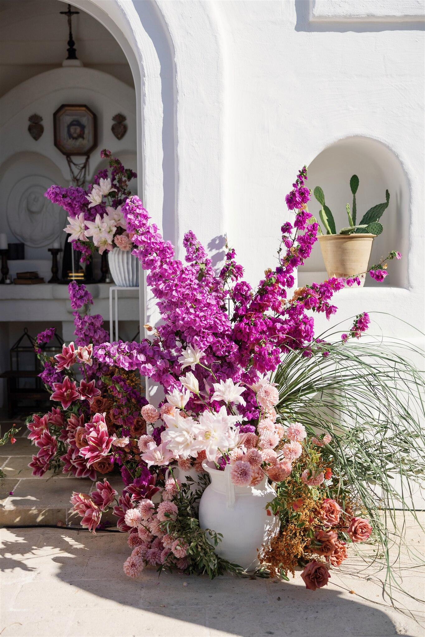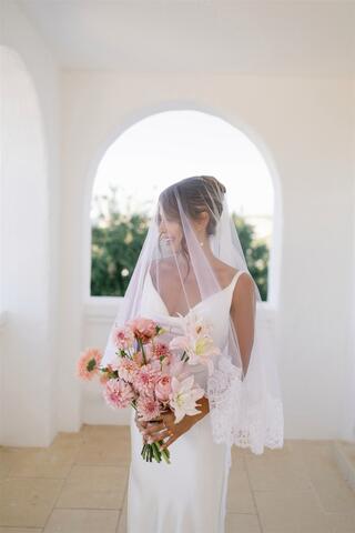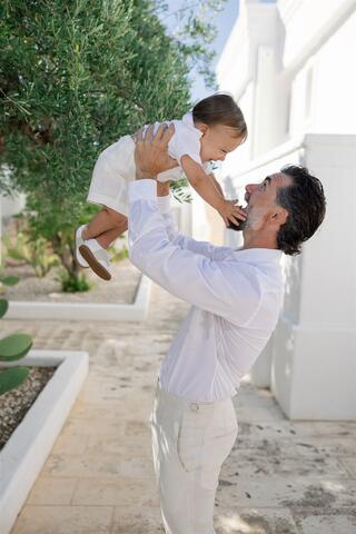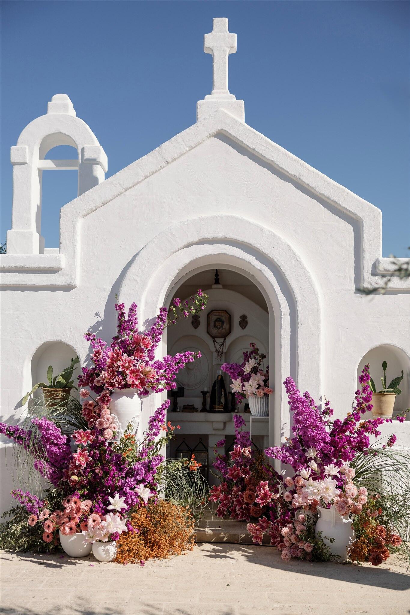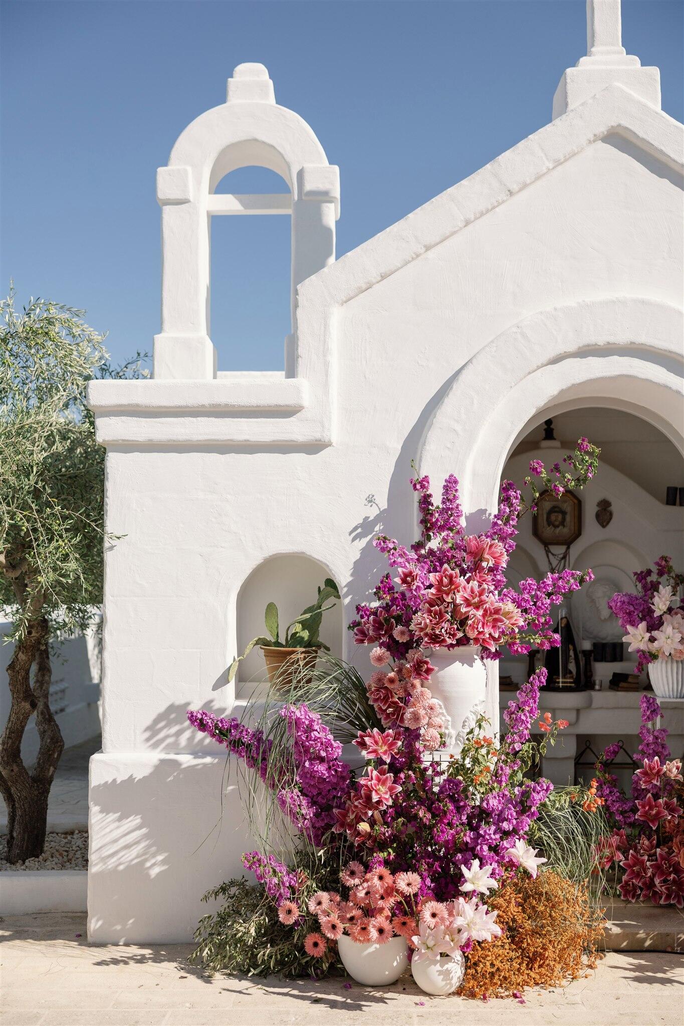 The wedding day unfolded under a clear Puglian sky, bright and luminous. White tones reflected the sunlight, creating an atmosphere that felt almost suspended in time. Guests moved through the borgo as if they were part of a shared home, not attendees at an event.