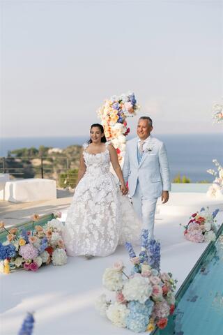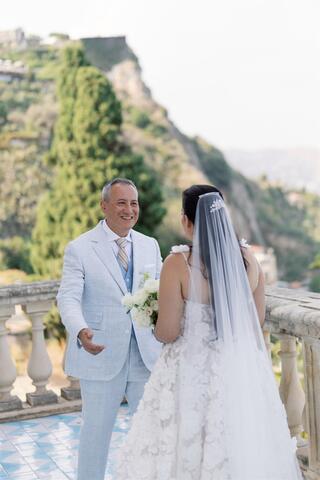 Travelling from New York, the couple wanted more than a ceremony. They intended to give their guests an authentic Italian experience, allowing them to truly live the destination rather than simply visit it. Taormina became the perfect stage, offering sea views, history, vibrant culture, and a rhythm that effortlessly blends elegance with joy.