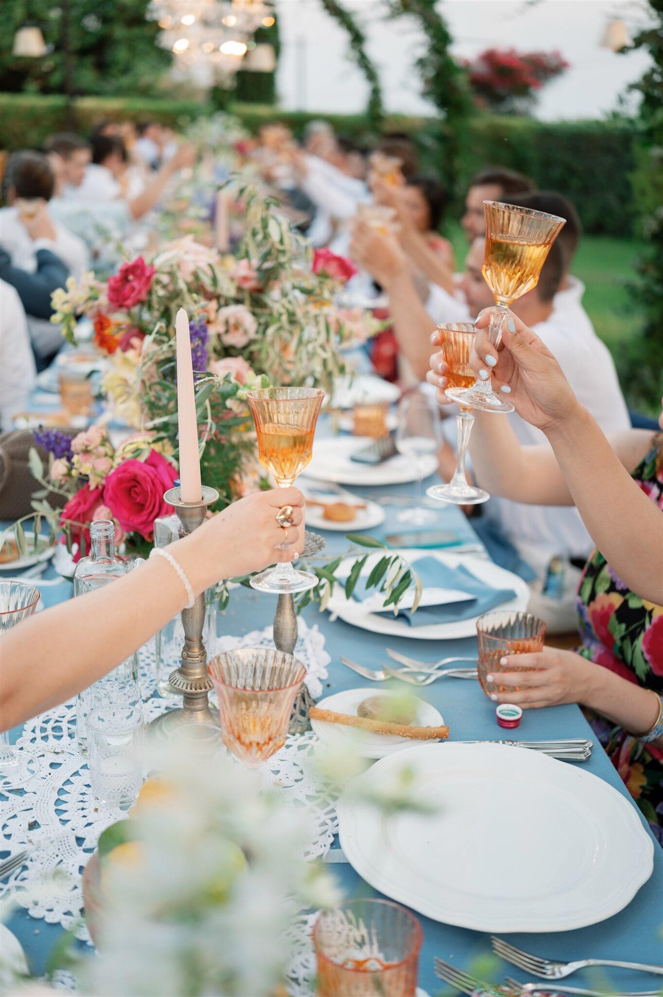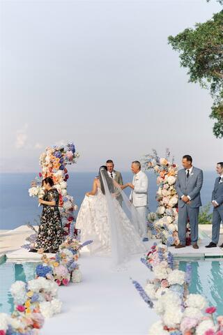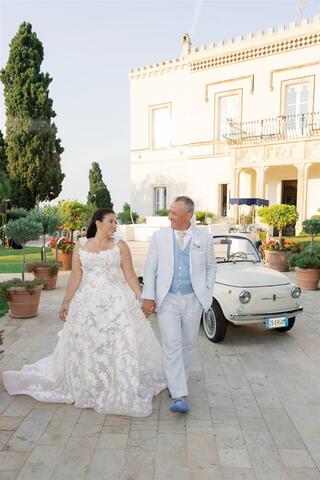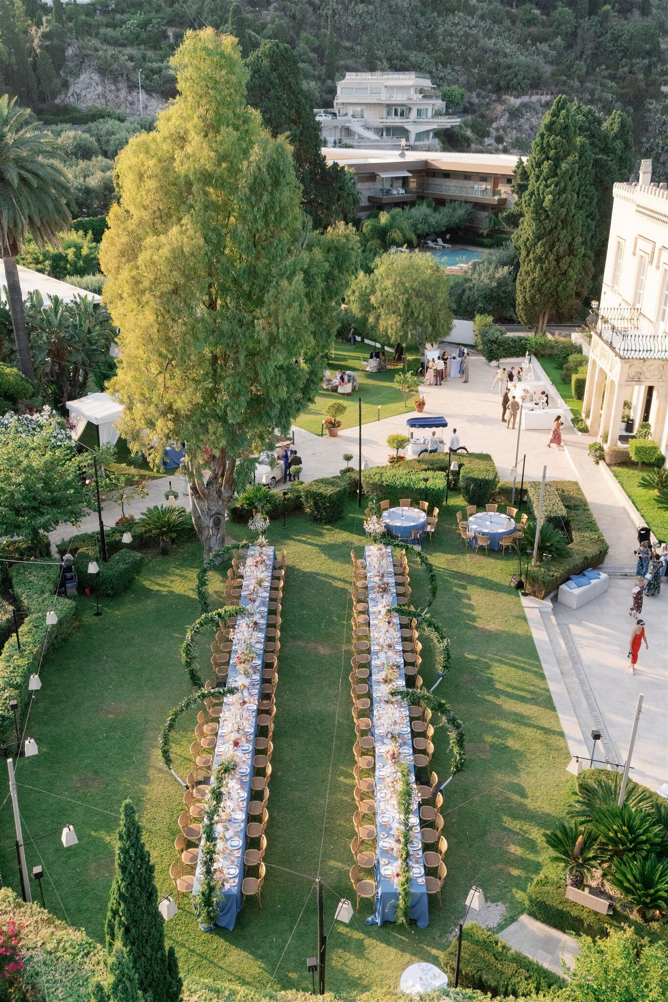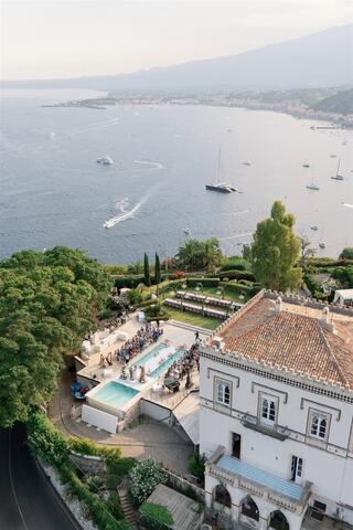 The rehearsal dinner took place in an elegant restaurant overlooking the sea, where the light of sunset framed laughter, anticipation, and shared stories. The wedding day itself unfolded at the historic Villa Mon Repos, a rare gem in the heart of Taormina, offering panoramic views and the freedom to celebrate under the stars until late into the night. The experience concluded with a relaxed brunch the following day, allowing everyone to savour the final moments together.