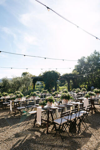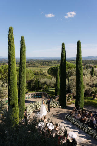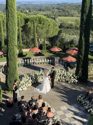 The choice of Tenuta Il Palagio could not have been more perfect. This sixteenth-century estate, nestled among the vineyards of Chianti near Figline Valdarno, offers breathtaking views over the countryside, a warm and refined atmosphere, and five-star services that elevate every experience. It is a place that feels timeless, where history and nature coexist in perfect harmony.