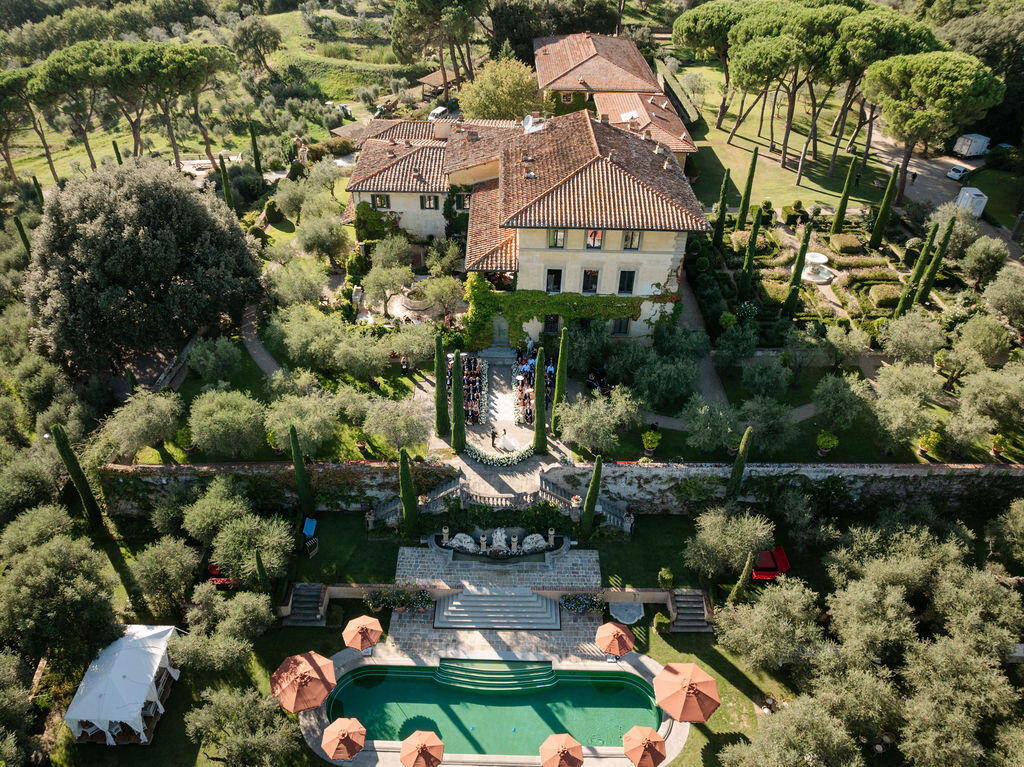 Some weddings in Italy are defined by beauty. Others by emotion. Kiana and Ryan’s wedding was defined by both, woven together in a two-day celebration set in the rolling hills of Tuscany, at one of the most iconic private estates in the country: Tenuta Il Palagio, the historic home of Sting and Trudie Styler.