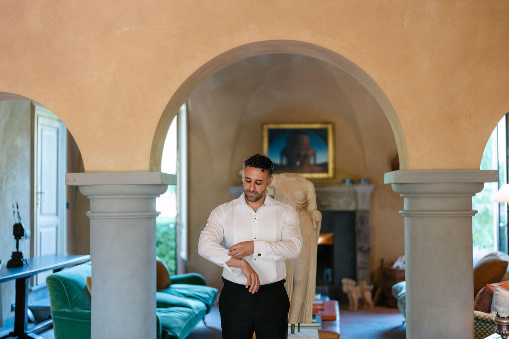 Traveling from Los Angeles, USA, the couple dreamed of offering their guests not just a wedding day, but a complete immersion into the Italian lifestyle. Their intention was clear from the very beginning: two days of magic in Tuscany, where elegance, intimacy, culture, and joy could unfold naturally, moment after moment.