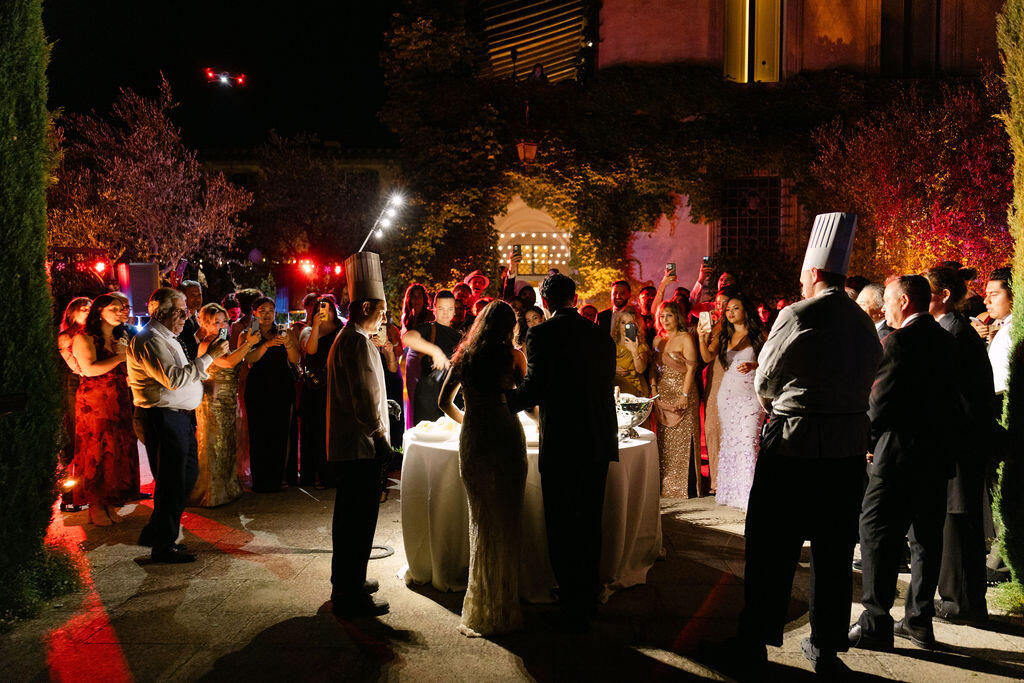 As the Tuscan sun set behind the vineyards and the estate lit up with chandeliers, music, and candlelight, it became clear that this was not simply a destination wedding in Italy.
