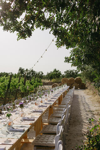 Coming together from different parts of the world, Lara and Ian envisioned a wedding that honored their Jewish heritage while embracing the raw beauty of southern Italy. Their goal was clear: to create an immersive celebration that combined spirituality, joy, music, and togetherness, all set against the landscapes of vineyards, olive groves, and the Adriatic Sea.