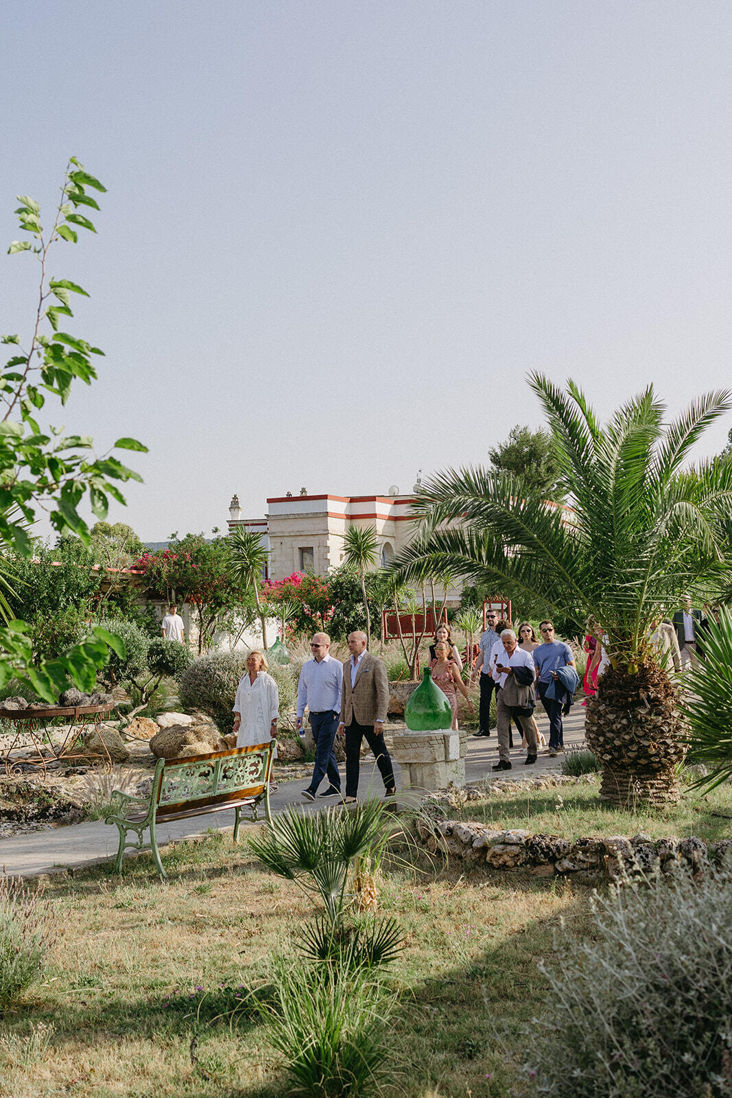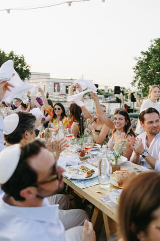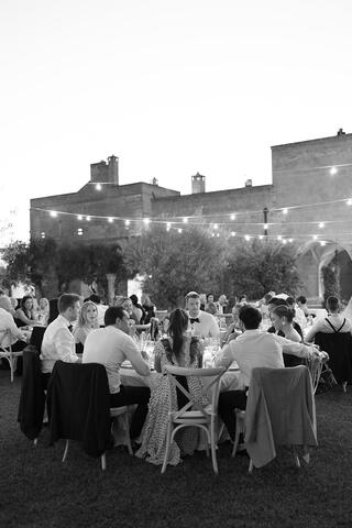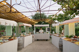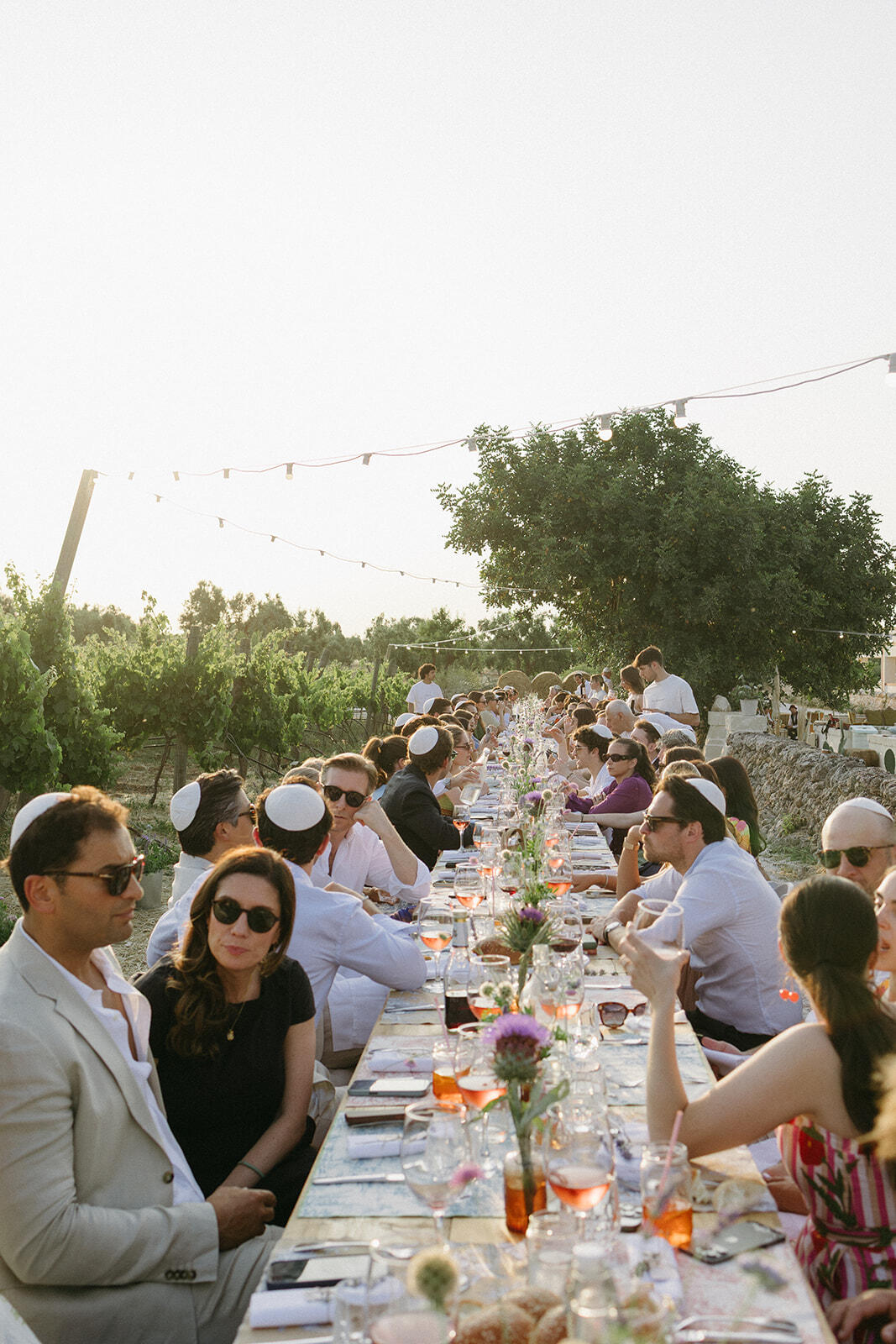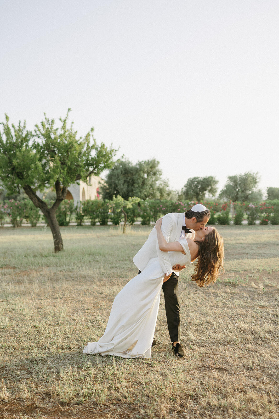 The experience unfolded across three different Puglian settings, each chosen for its unique atmosphere. It began with a deeply meaningful Shabbat dinner among the vineyards of a local masseria, continued with a vibrant beach party by the sea, and culminated in an elegant wedding celebration at Tenuta La Residenza Pettolecchia, a private luxury estate nestled between Fasano and Savelletri.