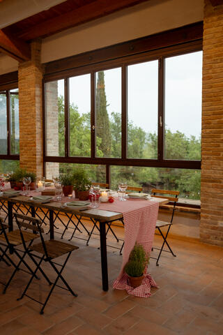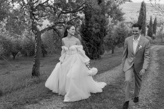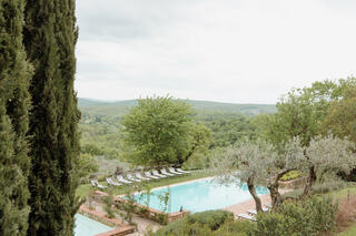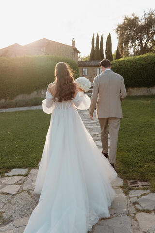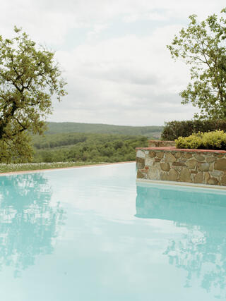 Peaking through the tops of those famous rolling hills of Tuscany, Casa Cornacchi stands tall and charming. This 16th‑century watchtower turned country estate is the warmest welcome to couples promising each other a long life together. Long stretches of vineyards and olive groves will be waiting for you right at the front door of this secret venue in Tuscany, offering an endless natural panorama, matched only by the quiet hum of the countryside, the perfect symphony for love stories to unfold.