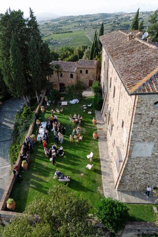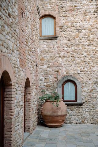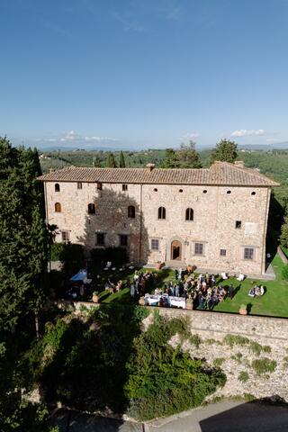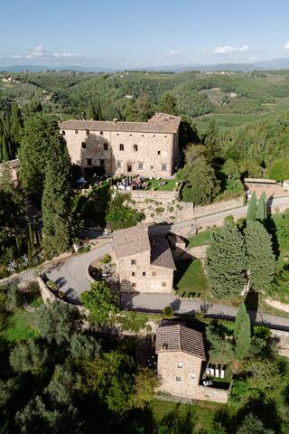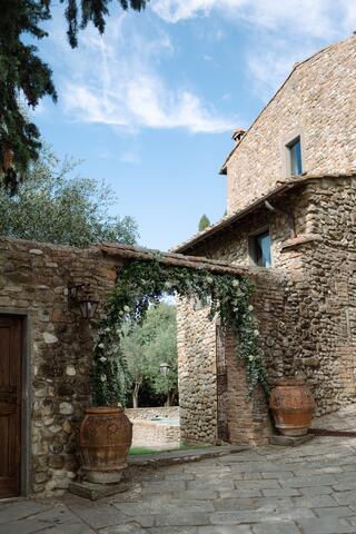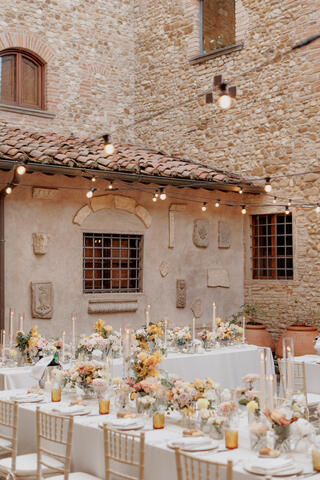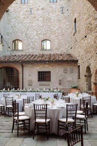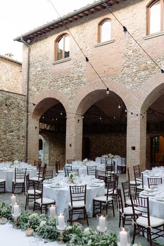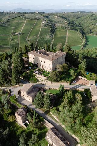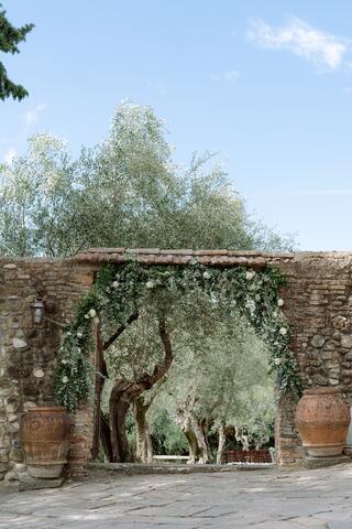 Perched on the hills of Chianti, this luxurious agriturismo Castello is an ancient love story whispered under timeless Tuscan skies. The location, San Casciano in Val di Pesa is in itself one of the great perks of getting hitched here. You'll have Florence a short drive away and breathtaking views stretch across the countryside as far as the eye can see. This medieval site is designed for lovers who are after the whole experience right from the get-go of its ancient gates, the delicate fragrances of olive groves and vineyards, the hundreds-old architecture charm and the serene emotions this wild nature is evoquing.