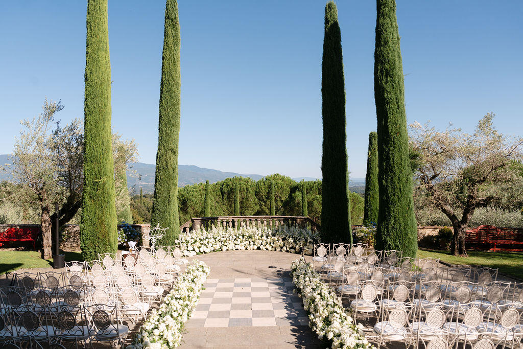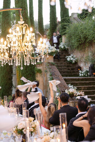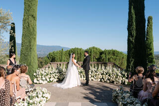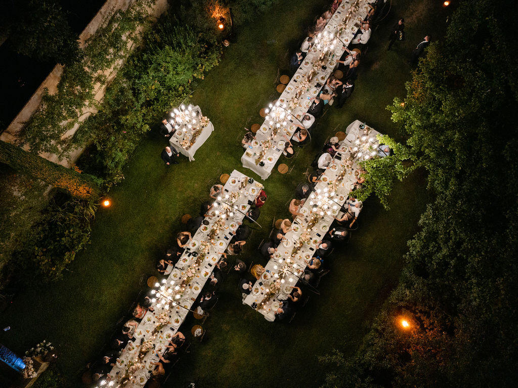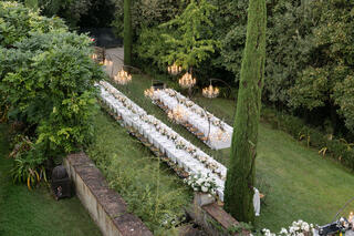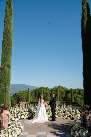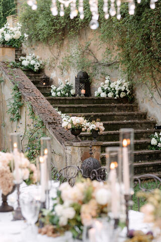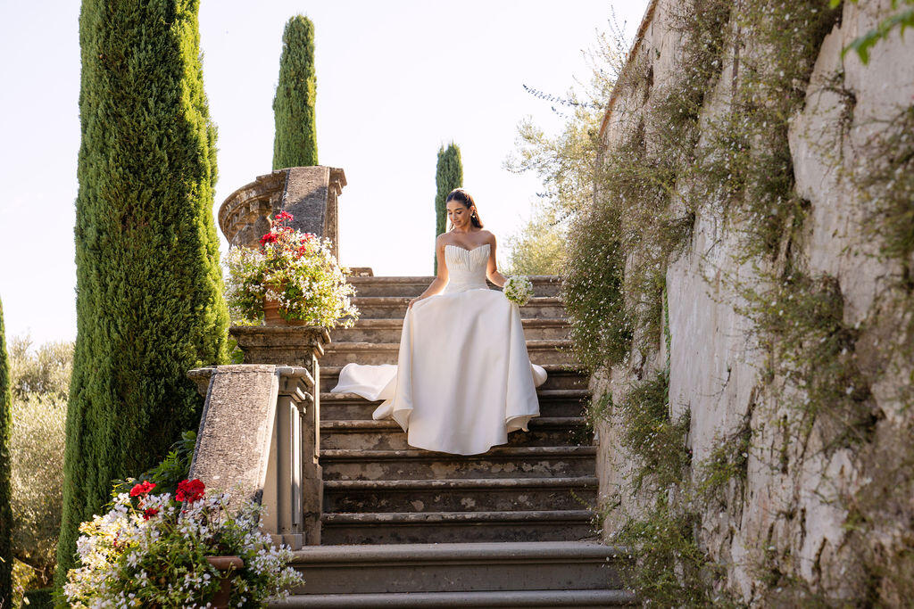 Here, weddings are not staged; they are lived. Afternoon light filters through cypress trees, casting soft shadows on ancient stone walls, while laughter echoes beneath arched loggias once walked by nobility. Every corner of Il Palagio feels cinematic, yet deeply rooted in the real, unspoiled essence of Stile Italiano — refined, natural, and effortlessly luxurious.