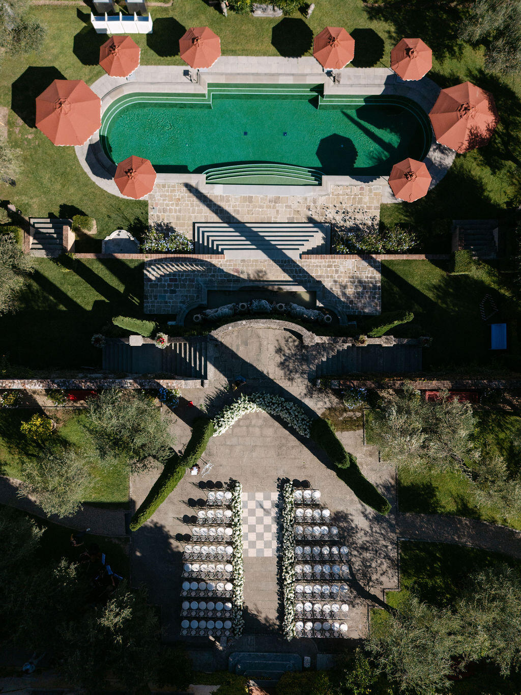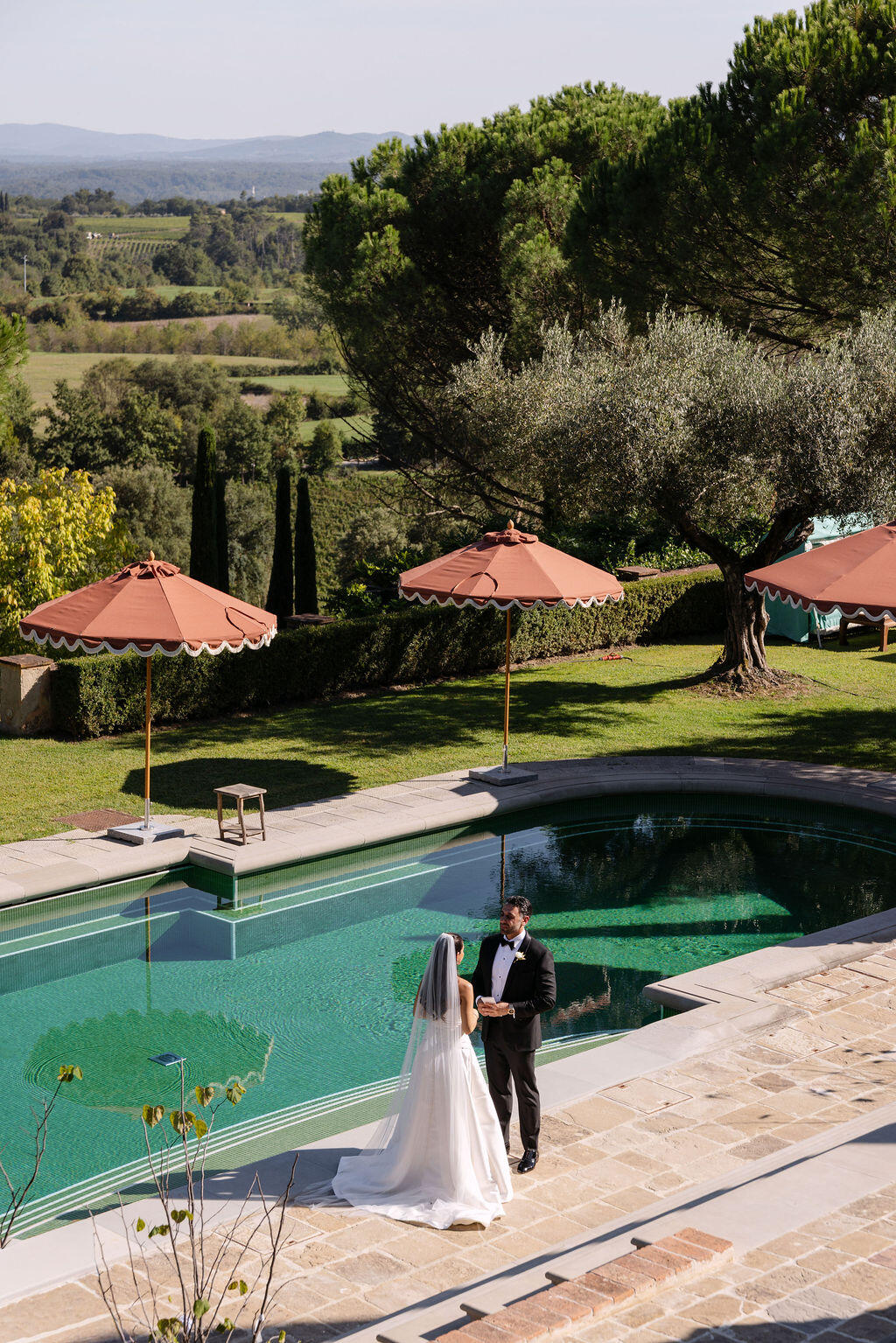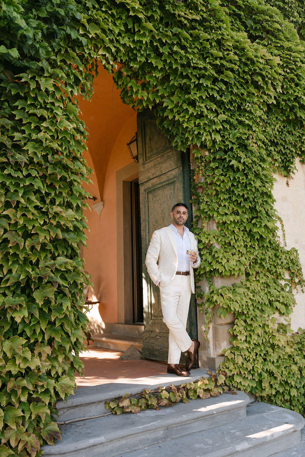 Here, weddings are not staged; they are lived. Afternoon light filters through cypress trees, casting soft shadows on ancient stone walls, while laughter echoes beneath arched loggias once walked by nobility. Every corner of Il Palagio feels cinematic, yet deeply rooted in the real, unspoiled essence of Stile Italiano — refined, natural, and effortlessly luxurious.